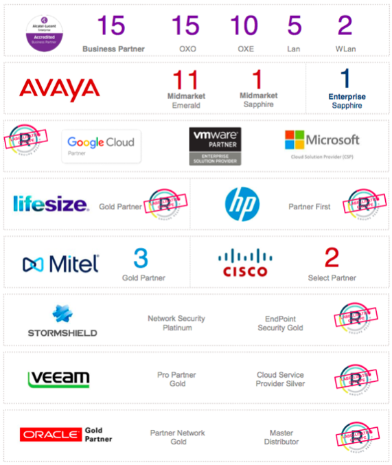 Le Groupe RESADIA détient les plus hauts niveaux de certifications auprès de ses partenaires, éditeurs et constructeurs. Auprès de ses clients, RESADIA s’engage à apporter des solutions IP adaptées, selon leurs besoins, afin de leur permettre d’exercer leur métier avec sérénité, efficacité et pérennité. La Labellisation Groupe est un accord signé entre RESADIA et le partenaire, permettant à tous les associés de bénéficier de ces certifications.